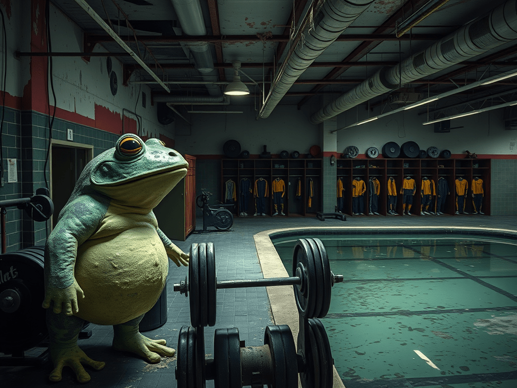 Out back, an unused swimming pool lurked, its water murky and black—a cauldron of plague, dead rats, and God knows what else. Walt, the gym’s owner and part-time crypt keeper, had a peculiar ritual. Every so often, he’d saunter outside, brandishing a pool net like a scepter, and scoop up some unfortunate deceased creature. He’d hold it aloft for all to see, like a demented priest presenting an unholy sacrament. This grim ceremony was invariably met with a thunderous round of applause from the gym-goers, who treated Walt’s rodent exorcisms like a halftime show. Walt would then toss the cadaver into a nearby dumpster with all the flourish of a Shakespearean actor delivering a monologue, bowing deeply as if he’d just conquered a dragon.
