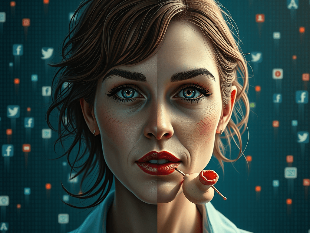 First, let’s talk about performance. Joan, like any good social media user, lives her life as if auditioning for a role she already occupies—one shaped not by authenticity but by optics. She performs “relatable misery,” complete with awkward office banter, fake smiles, and passive-aggressive salad orders. Social media rewards this pantomime, demanding we be palatable, aspirational, and vaguely miserable all at once. The result? A version of ourselves designed to please an audience we secretly resent. Joan is what happens when your curated self becomes the dominant narrative—when branding overtakes being. Her AI-generated counterpart doesn’t misrepresent her; it distills her curated contradictions into a grotesque caricature that somehow feels… accurate.