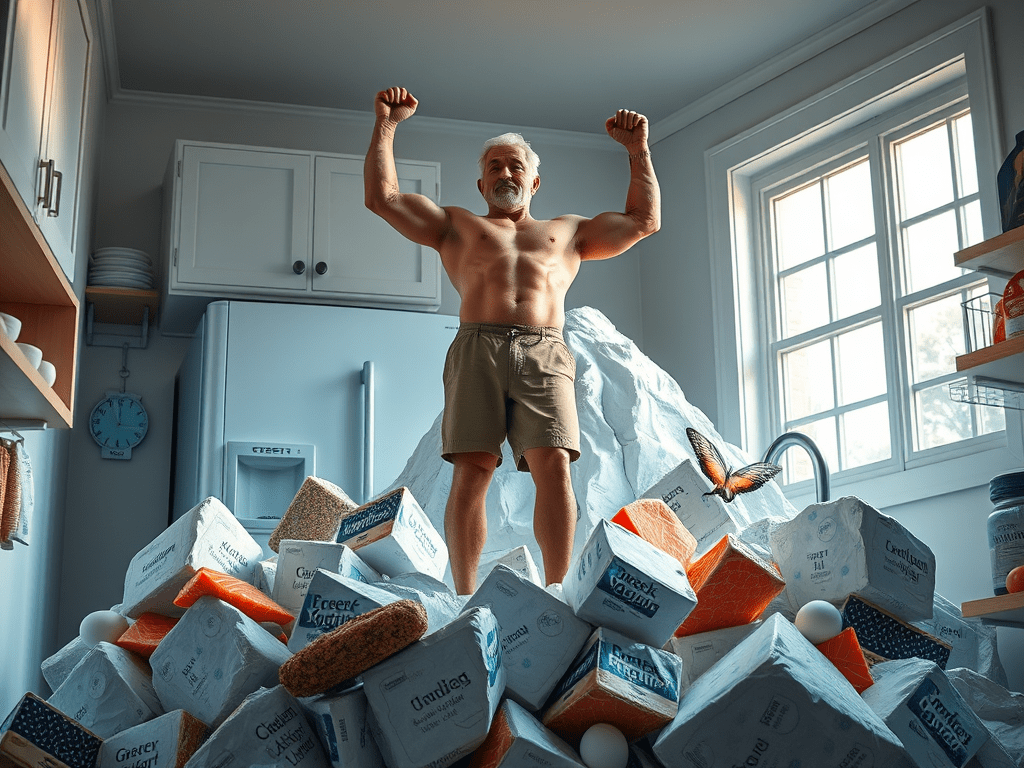 Each morning begins with a stare-down: me versus Proteinberg, the Everest of self-discipline, rising from my fridge like a smug Nordic god carved from blocks of Greek yogurt and slabs of salmon. It’s a cruel, relentless climb, strewn with the jagged boulders of eggs, tempeh, sardines, cottage cheese, soy milk, and the occasional whey protein landslide. Somewhere near the summit: a dollop of smug self-respect, earned only after choking down what tastes like Poseidon’s bait bucket mixed with barnyard runoff.