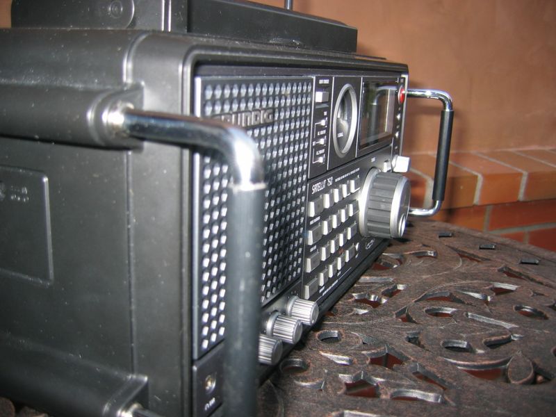 Mine is in good shape except for an antenna problem—the smaller top portions of the antenna pull out of the base. But it still receives well on all bands. Oh, but that’s the other problem—the writing is in Russian and I’m totally unfamiliar with the frequencies they use. So I push buttons and turn knobs until I hear people talking or I hear music. It’s an adventure.